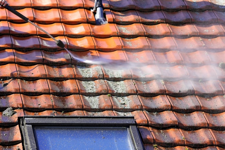 Démoussage Professionnel : Nous éliminons la mousse, les lichens et les algues de votre toiture, prévenant ainsi les infiltrations d'eau et prolongeant la durée de vie de votre couverture.